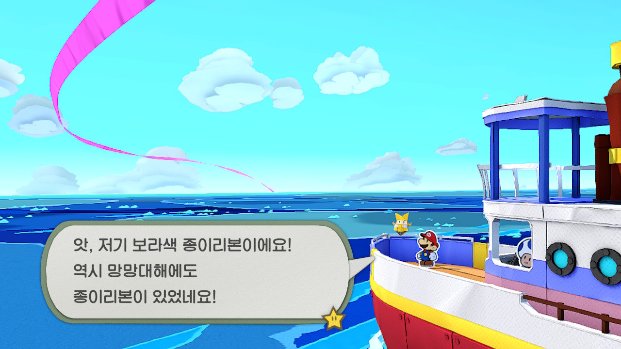 내 두 번째 페이퍼 마리오 시리즈이다. 첫 번째는 마리오 25주년 패키지를 샀더니 사은품으로 딸려 들어왔던 [슈퍼 페이퍼 마리오]였는데 그때 좋은 경험이 있어서 이 블로그에 후기(1)(2)도 남겼더랬지. 이후에 [스티커 스타]니 [컬러 스플래시]니 후속작이 몇 개 나온 것 같지만 해 보지는 않았고, 지금 대충 쓱 보니 평도 그렇게 썩 좋지는 아니올시다 인 것 같다. 여하튼 제쳐두고, [종이접기 킹]이 새로 발매를 하는데 나는 [슈퍼 페이퍼 마리오] 때의 기억 하나만으로 구매를 결정했다. 혹자는 이런 류의 게임은 발매 후 평점을 확인하고 구매를 결정해야 한다지만 깔끔하게 무시하기로 했고, 결론부터 말하면 대성공인 것 같다.