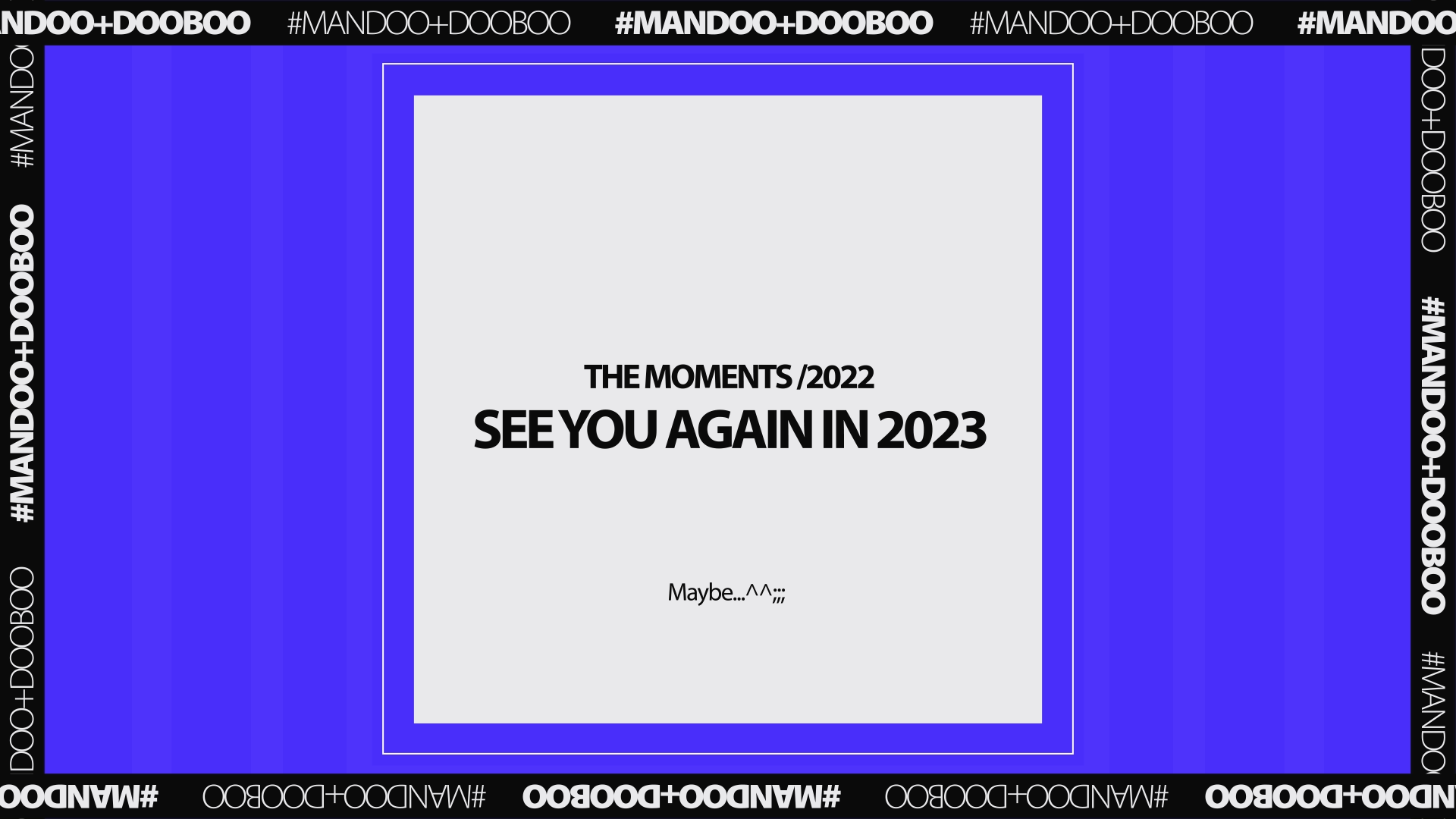 Annual Closing Video의 메인 타이틀을 뭘로 할까 고민했다. 원래는 이런저런 아이디어를 두고 씨름하는 편인데 이번엔 별다른 가안 없이 거의 바로 생각나서 결정한 것이 'THE MOMENTS'임. 한 해 동안 있었던 많은 순간들을 한데 모아 기록한다는 의미에서였다. 막상 제목을 붙이고 나서 옳은 표현이 맞나 하면서 검색을 좀 해 보니 동명의 음악 그룹(#)도 있고, 동명의 곡(#)도 있었다. 이러니 뭔가 오리지널리티가 떨어지는 느낌이지만 내가 뭘 대단한 걸 만드는 것도 아니고 뭐 어때 하면서 그대로 밀고 나갔다. 뒤에 '/2022'를 붙인 것은 연도별로 만들겠다는 나의 큰 의지였는데 후술 할 몇 가지 이유로 이후 시리즈를 이어나갈지 말지를 고민 중이다. 숫자 앞에 슬래시를 붙인 것과 띄어 쓰지 않은 것은 모두 큰 의미가 없음. 그래서 차후에 시리즈를 만들게 되면 표기는 변경될 여지가 충분하다.