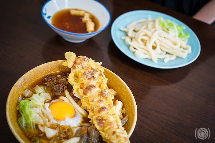 간판은 우동이지만 사실 나온 건 된장 칼국수의 느낌이다. 메뉴는 뜨거운 운동과 차가운 우동 단 둘에 토핑을 추가해서 먹는 방식. 내가 주문한 뜨거운 우동은 된장 베이스의 구수하고 뜨끈한 국물과 칼국수를 연상케 하는 투박하게 절단한 면발이 매우 인상적이었다. 구비된 고추양념을 넣으면 국물을 칼칼하고 매콤하게 즐길 수 있어 더욱 좋았다. 구수하기도 얼큰하기도 한 국물 덕택에 전날 저녁부터 탈이 나 속이 안 좋았음에도 불구하고 정말 맛있게 잘 먹고 기운도 많이 챙겼다. 아내는 차가운 우동을 주문했더니 뜨거운 츠케멘 스타일의 우동이 나왔다. 면을 담갔다 먹으면 덜 뜨겁지만 그래도 이름처럼 차갑지는 않다. 우리 데리고 돌아다니던 가이드들도 여기서 밥을 먹었던 걸 보면 이 집은 확실히 맛집이긴 했나 보다.
