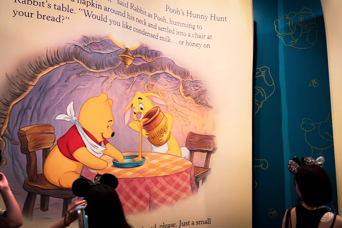 - 푸의 허니 헌트 : 여기도 꽤 인기 있는 곳. 대기 시간이 길지만 일단 건물 내로 진입하면 동화책 스타일로 꾸며놓은 조형물 보는 재미가 있다. 여기 다크라이드는 도쿄 디즈니랜드 내에서도 꽤 수준급인 것 것 같다. 풍선 타고 날아가는 푸가 귀엽고, 홀로그램을 이용한 연출과 함께 꿈 속 환상의 세계로 떠오르는 푸가 귀엽고, 마지막 꿀통에 처박혀서 꿀 범벅이 된 푸는 덜 귀엽다. 타고 나면 투어 중 나오는 푸의 대사 '조심해!(気をつけろ!)'가 계속 머리에 맴돈다. 다 죽어가는 노인 목소리인 원어 버전 푸(#)에 비해 일본 푸는 말 그대로 어리석고 살이 찐 순진한 곰 목소리다. 하지만 별로 귀엽다는 생각은 안 든다.