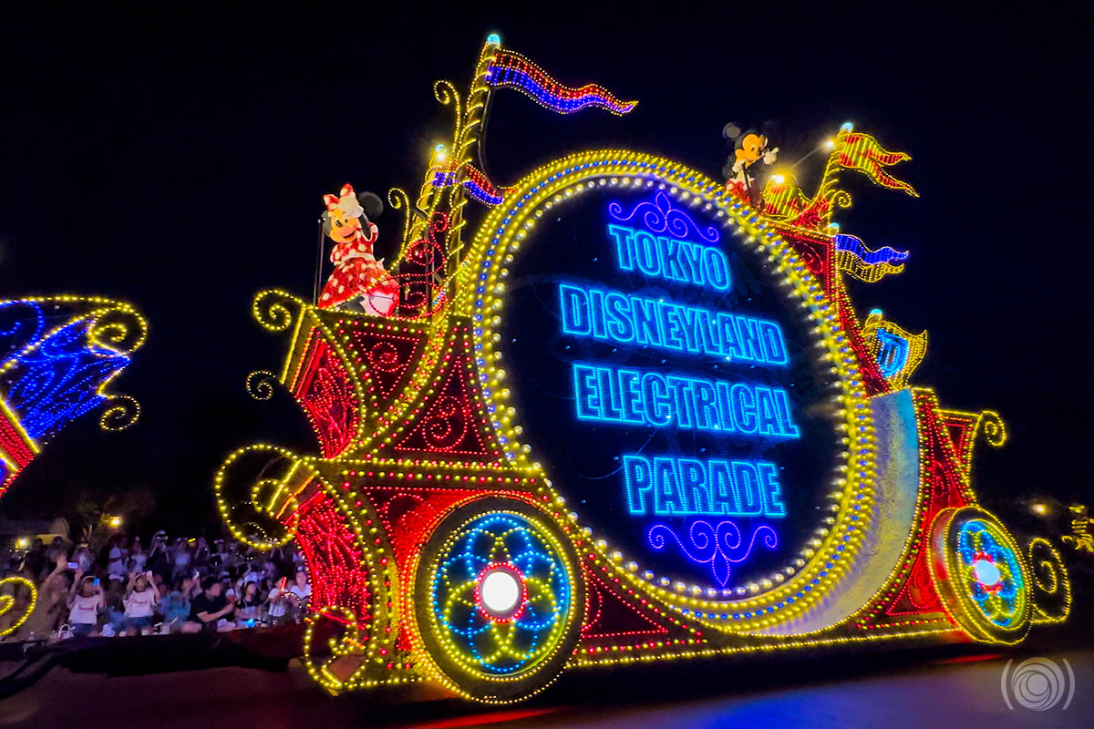 - 일렉트리컬 퍼레이드 드림라이츠 : 하모니 인 컬러로부터 2시간이 지난 오후 7시의 퍼레이드. 전반적으로는 하모니 인 컬러와 비슷하지만 일몰 후에만 즐길 수 있는 일루미네이션은 또다른 느낌을 준다. 도쿄 디즈니랜드에서는 코빼기도 보이지 않던 엘사와 안나가 여기서만 나온다. 이것저것 다 볼 만 하지만 가장 인상깊었던 파트는 시시각각 모습을 바꾸며 다른 디즈니 캐릭터를 패러디하는 지니였다.