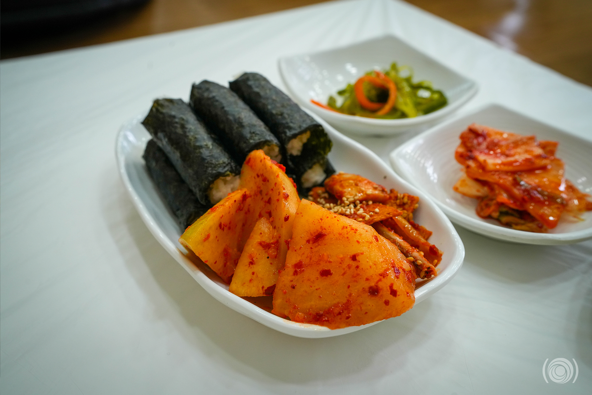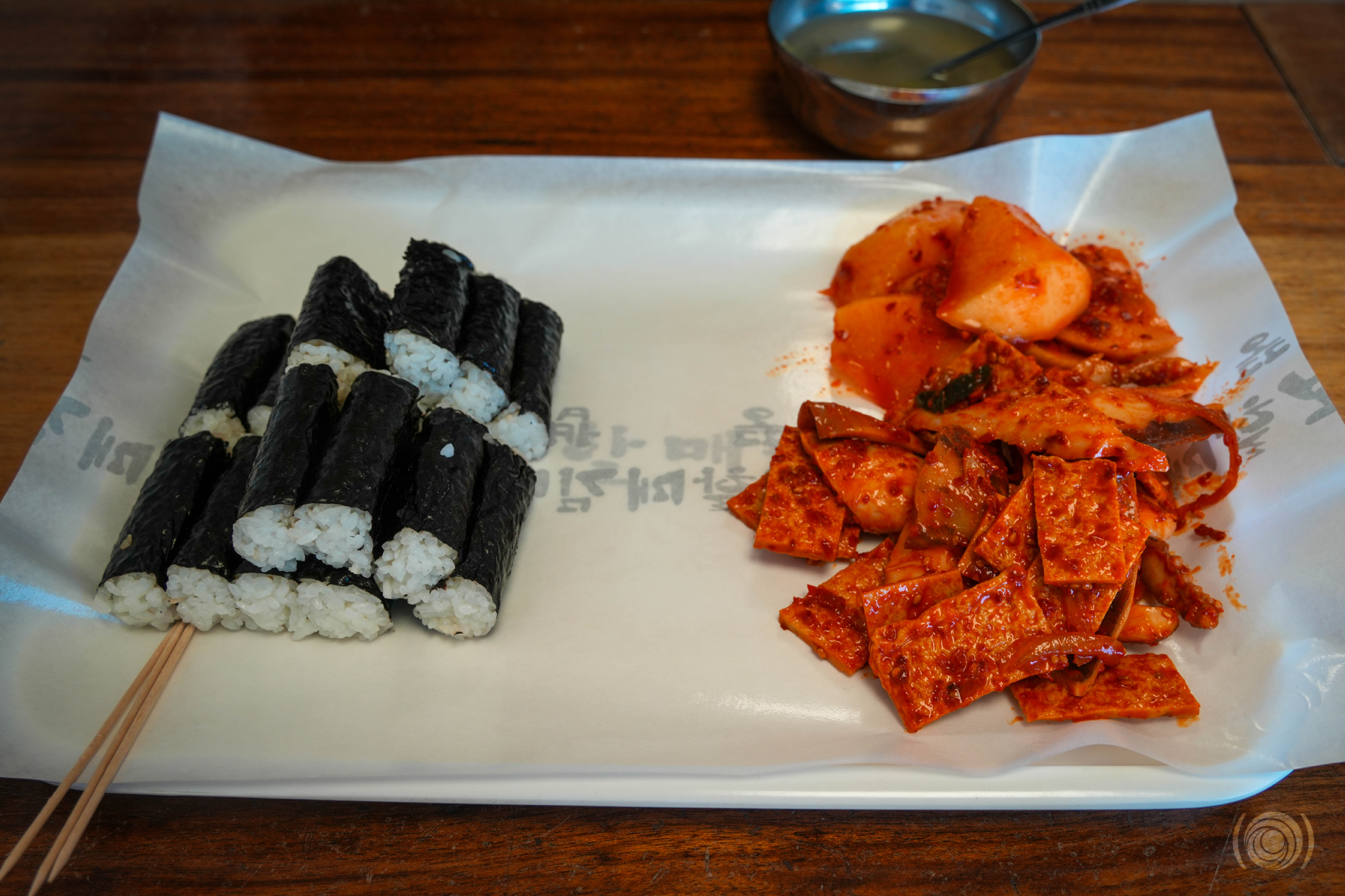 제대로 된 충무김밥을 먹어 본 것은 이번이 처음이지만 그래도 이곳이 원조라고 해서 그런지 특별하게 느껴지는 것 같다. 오징어, 오뎅무침은 고춧가루 맛이 좀 강하고 평범한 편이지만 특히 섞박지가 시원하고 감칠맛이 나서 좋았다. 같이 곁들여 나오는 된장국은 슴슴하니 간이 약하지만 차려 나온 충무김밥과 궁합이 좋다.