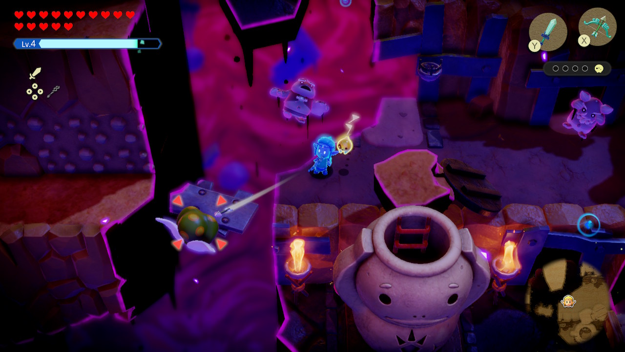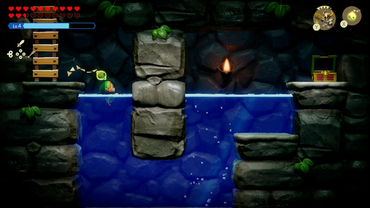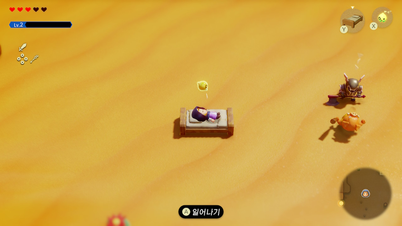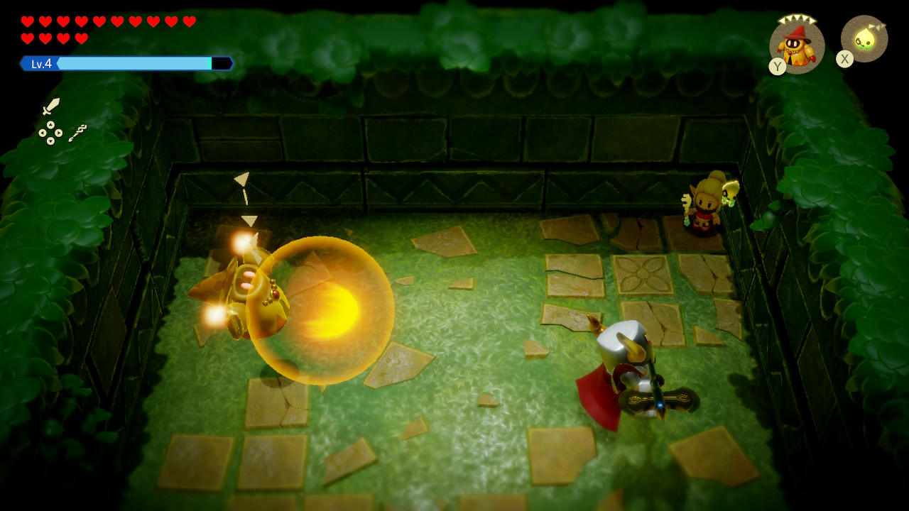 대부분은 투영체를 소환해 놓고 뒷전에 서서 응원만 하는 소극적인 전투를 하게 된다. 투영체를 싱크해 무기처럼 들고 다녀도 되지만 적들이 많아지면 맷집 좋은 투영체 소환해 놓고 뒤로 빠지는 게 더욱 속 편하다. 이렇다 보니 피격당할 일도 적고, 만약에 피격당한다 하더라도 침대가 해결해 주다 보니 플레이 내내 별다른 긴장감이 느껴지지 않았다. 이런 이유에서인지 처음부터 하드모드가 열려 있지만 큰 의미가 없다. 체력이 부족한 초반만 좀 더 조심하면 될 뿐 중후반부터는 몇 대 맞아도 별로 부담되지 않는다. 이외에 낙사 대미지도 없고 아무 장비 없이도 무거운 물건을 번쩍번쩍 들어 올리는 것이 '젤다'스럽지 않기는 했지만 제작진이 보다 캐주얼한 게임 디자인을 지향하는 것 같아 그러려니 했다.