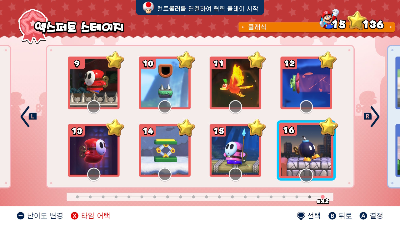 - 엔딩 후 추가되는 타임어택 컨텐츠도 있지만 하지 않겠다. 애초에 나는 이런 타임어택을 별로 좋아하지 않는다. 타임어택을 모두 달성하면 어떻게 되나 궁금해서 찾아봤더니 아무런 보상이나 특전도 없다. 이런 무의미한 컨텐츠는 손을 안 대는 것이 정신건강에 이롭다. 같은 이유로 <요시 크래프트 월드>도 타임어택 컨텐츠는 제꼈다.