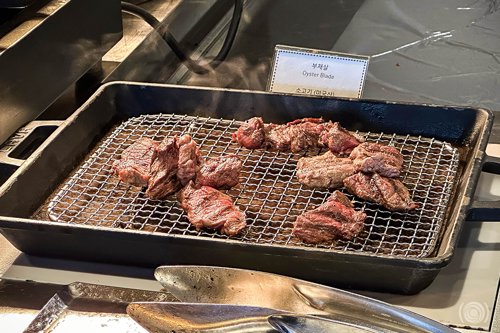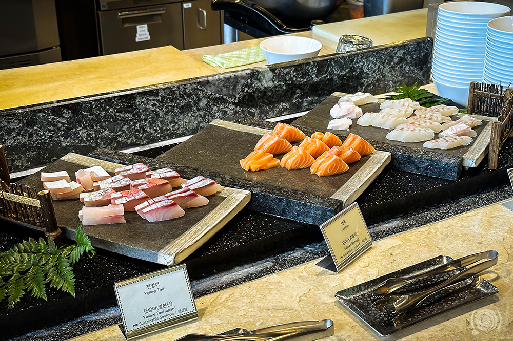 그릴 코너에는 베이컨과 부챗살이 나온다. 새우나 갈치(였던 것 같다)구이도 있었는데 나는 둘 다 맛있어하긴 하지만 먹는 것이 귀찮아서 한 번도 손을 안 댔다. 부챗살 굽기는 제각각이다. 그리고 막 구웠을 때 먹지 않으면 너무 익거나 식어서 질긴 경우가 좀 있었다. 보통 스테이크는 홀그레인 머스터드나 와사비 얹어 먹는 걸 좋아하지만 이런 곳에 오면 그냥 아무것도 없이 고기가 주는 본연의 풍미에만 집중하는 편이다. 다행히 르블랑 부챗살은 고기만 먹어도 참 좋았다. 이외에 사진은 없지만 쌀국수를 올리는 보통 호텔 조식 즉석코너와는 달리 우동이 올라와 있었던 것이 아직도 기억에 남는다. 내가 시치미나 텐카스 비율을 잘 맞춘 것도 있지만 베이스가 되는 육수가 괜찮았다. 우동 예쁘게 잘 만들었었는데 아쉽게도 사진을 안 찍었네.