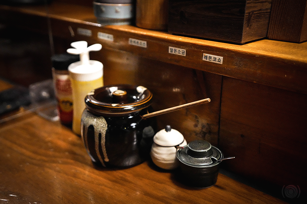 돈카츠와 곁들여 먹을 수 있는 소스도 많다. 돈카츠소스 말돈소금 레몬코쇼 와사비 겨자 트러플소금 심지어 김치시즈닝까지 선택의 폭이 다양한 덕분에 골라 먹는 재미가 있다. 보통 돈카츠 집에서 사용하는 돈카츠소스는 시판을 쓰거나 자체적으로 만들어도 시판과 큰 차이가 없는 경우가 대부분이었던 것 같다. 그래서 돈카츠집엘 가면 이런 소스보다는 소금이나 특히 와사비와 함께 곁들여 먹으며 고기 본연의 맛을 느끼는 것을 선호하는 편이다. 하지만 톤쇼우에서 가장 만족했던 건 돈카츠소스다. 구수함으로 시작해 달달함 끝에 살짝 새콤함이 감도는 맛. 돈카츠도 돈카츠지만 이 소스에 꽤 만족했더랬다. 나머지는 다 괜찮았고 돈카츠집에서는 잘 찾아볼 수 없었던 김치시즈닝도 독특하긴 했으나 과연 돈카츠에 어울릴만한 소스인가? 는 글쎄.