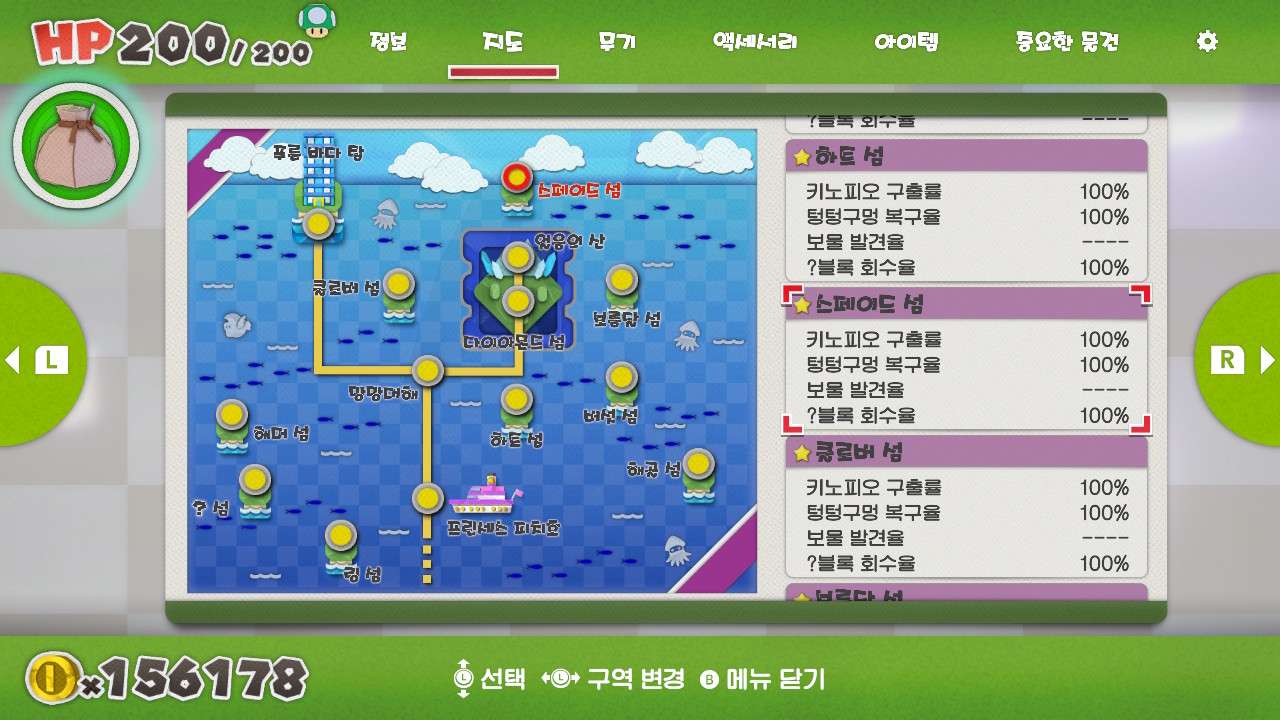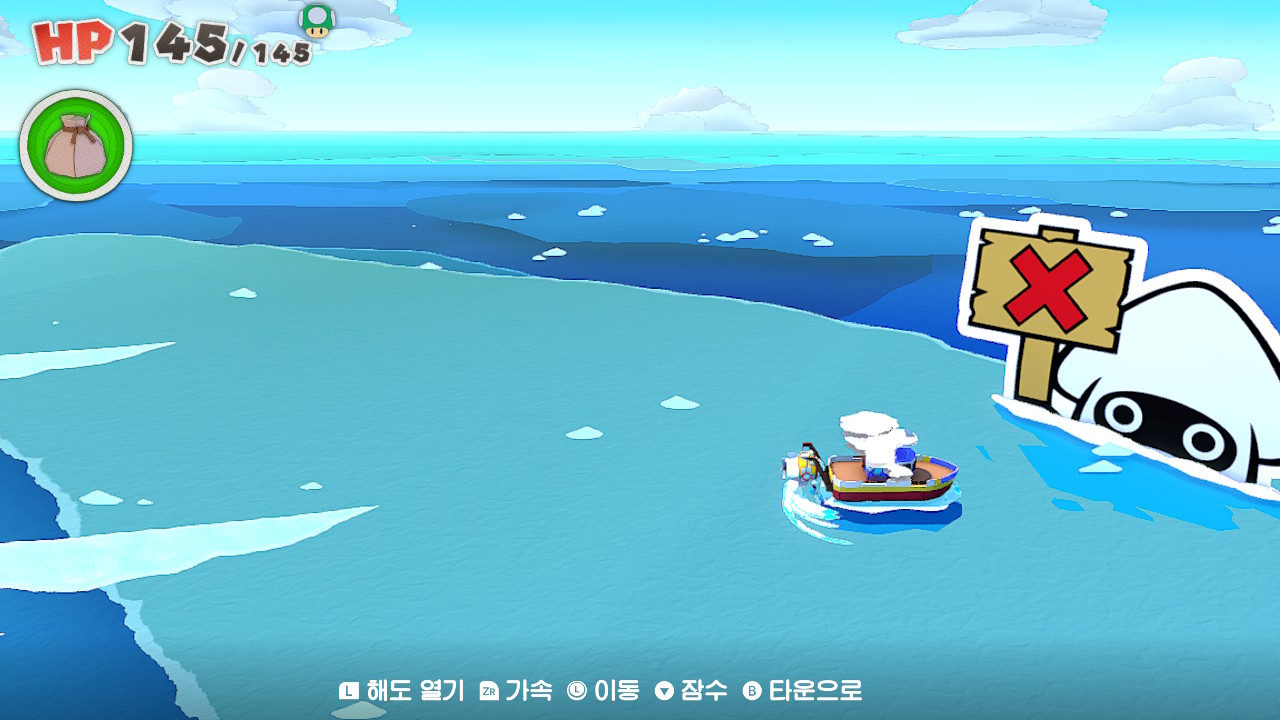 이전 작품들이 얼마나 유저-프렌들리한 UX를 지녔는지는 알 수 없지만, [슈퍼 페이퍼 마리오] 때의 경험으로만 미루어 보았을 때는 수집 등의 파고들기 요소를 100% 만족하기는 다소 어려웠다. 물론 수집품의 목록 등은 확인할 수 있으나 어느 지점에서 어떻게 얻어야 하는지는 공략을 보지 않으면 어려운 수준이었다. [종이접기 킹]은 이러한 면에서 편의성을 극대화한 작품이 아닌가 싶다.