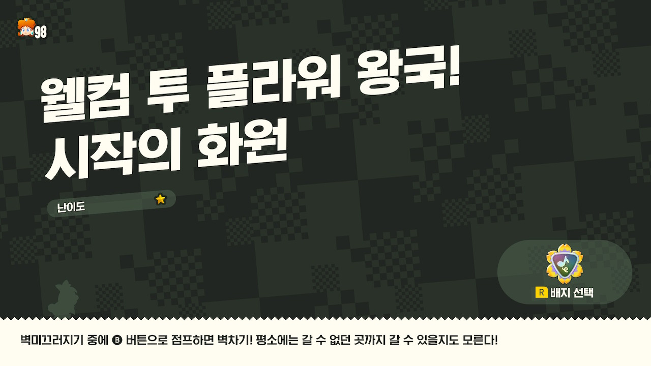 그리고 이 모든 적과 스테이지가 결코 어렵지 않다. 난이도도 미리 5단계로 표기했지만 어렵다고 분류되는 스테이지도 기존의 마리오 시리즈에 비하면 쉬운 편이다. 어려운 스테이지를 건너 뛸 수 있도록 코스 선택이 자유로운 월드맵 디자인은 덤이다. 심지어 마리오 시리즈의 전통이 된 도전의 장 스페셜 스테이지마저도 쉽다. 개인적으로는 기존에 있던 타이머와 스코어(이 유명무실한 점수 체계는 왜 있었는지 아직도 모르겠다)를 과감히 삭제함으로써 플레이의 직관성을 높인 점이 가장 눈에 띈다. 원더시드 획득을 위한 경우를 제외하면 시간제한이 없어졌기 때문에 플레이어는 입체적인 스테이지를 좀 더 여유롭게 관찰하고 분석할 수 있게 되었다. 또한 이런 난이도에 더욱 도움을 주기 위한 배지가 다양하게 주어진다. 심지어는 이 배지를 위한 튜토리얼 스테이지도 두개씩이나 주어진다. 상황 혹은 본인의 플레이 성향에 맞는 배지를 선택하여 플레이하면 게임을 더욱 쉽게 이끌어나갈 수 있고, 같은 스테이지라도 다른 배지를 사용하여 플레이의 다양성도 이끌어낼 수 있다. 게임이 너무 쉽다면 달인 배지를 장착해서 자체적으로 난이도를 높일 수도 있다. 플레이에 도움이 되는 배지를 사용해도 어렵다면 요시나 톳텐 등 초심자용 캐릭터로 플레이하거나 온라인 플레이를 통해 다른 사람에게 도움을 받을 수도 있다. 여러모로 완주까지 도움이 되는 장치를 많이 마련해 두었다.