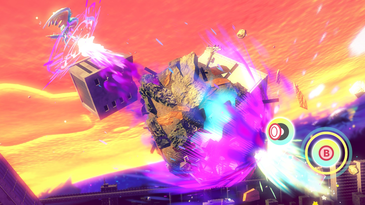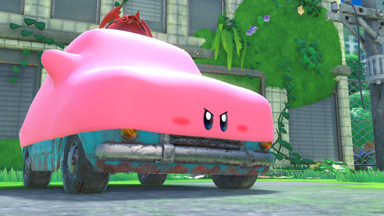 커비 시리즈는 처음인 내게도 시리즈 전통의 카피 능력은 커비의 상징이니만큼 이미 익숙하다. 하지만 그다지 특별하다 느끼지 못했던 이유는 게임의 역사가 오래된 지금 시점에서 적 능력 탈취는 이미 흔한 기믹이고 빼앗은 능력 또한 어디선가 볼 법한 것들이기 때문이다. 반면 이 게임의 정수는 새롭게 추가된 시스템, 폐허 각지에 널브러진 고물을 머금어서 새로운 능력을 얻는 머금기 변형이다. 레이싱(자동차, 아치, 제트 코스터), 액션(삼각, 고리, 자판기, 물 풍선), 플랫포머(토관), 퍼즐(전구, 계단, 작업차) 등 다양한 기믹으로 게임의 장르를 변형시켜 플레이의 템포를 변화시킨다. 물론 플레이의 중심이 되는 건 일정 구간만 사용되고 필연적으로 버려지는 머금기 변형이 아니라 스테이지 시작부터 보스전까지 줄곧 사용되는 카피 능력이다. 하지만 어느 것 하나 치우친다는 느낌이 없는 것은 개발자의 빛나는 완급 조절 덕분이다. 어느 능력 하나를 새로 습득하고 마음껏 사용하며 이것이 익숙해질 때쯤 꼭 새로운 카피나 머금기가 등장한다. 카피 능력은 업그레이드를 통해 같은 능력 안에서도 새로운 느낌을 받을 수 있으며, 머금기 변형은 업그레이드가 없는 대신 진행도에 따라 더욱 어려운 것을 수행함으로써 느끼는 새로움이 있다. 엔딩을 볼 때까지 늘 신선한 느낌이 가득하다.